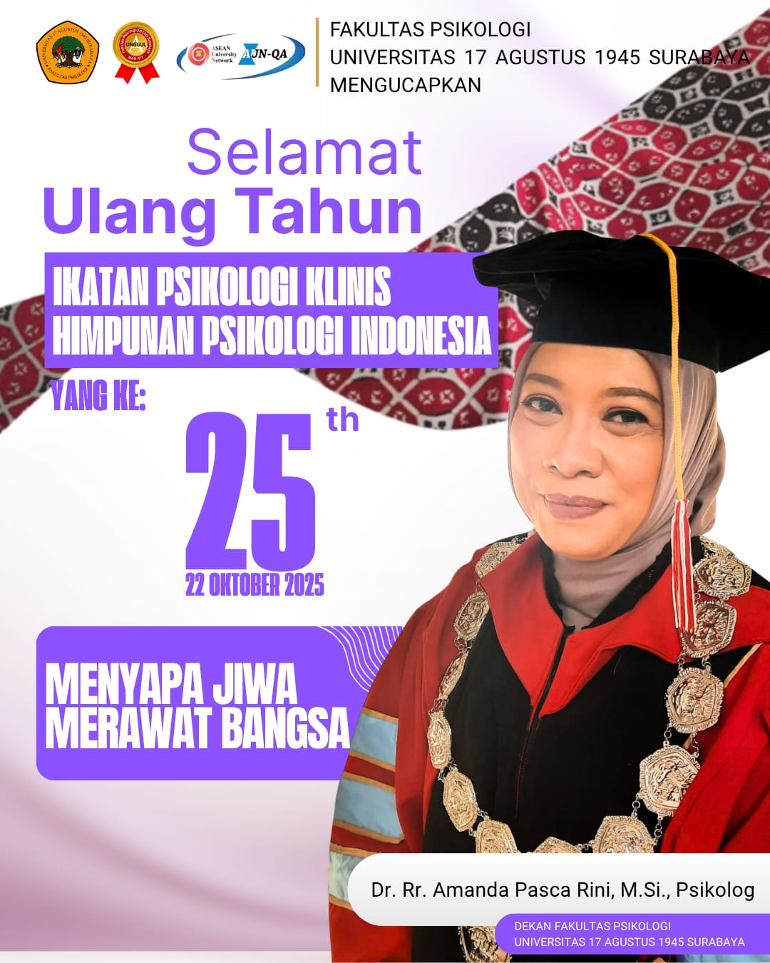 Selamat dan Sukses Atas Pencapaian Akreditasi Magister Psikologi Untag Surabaya 1945