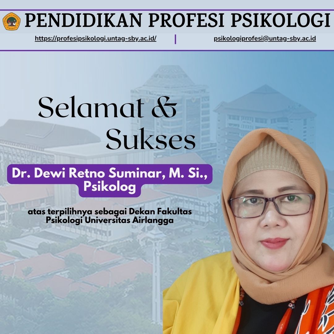 Selamat kepada F. Psi UNAIR atas terpilihnya Dr. Dewi Retno Suminar, M.Si., Psikolog sebagai Dekan