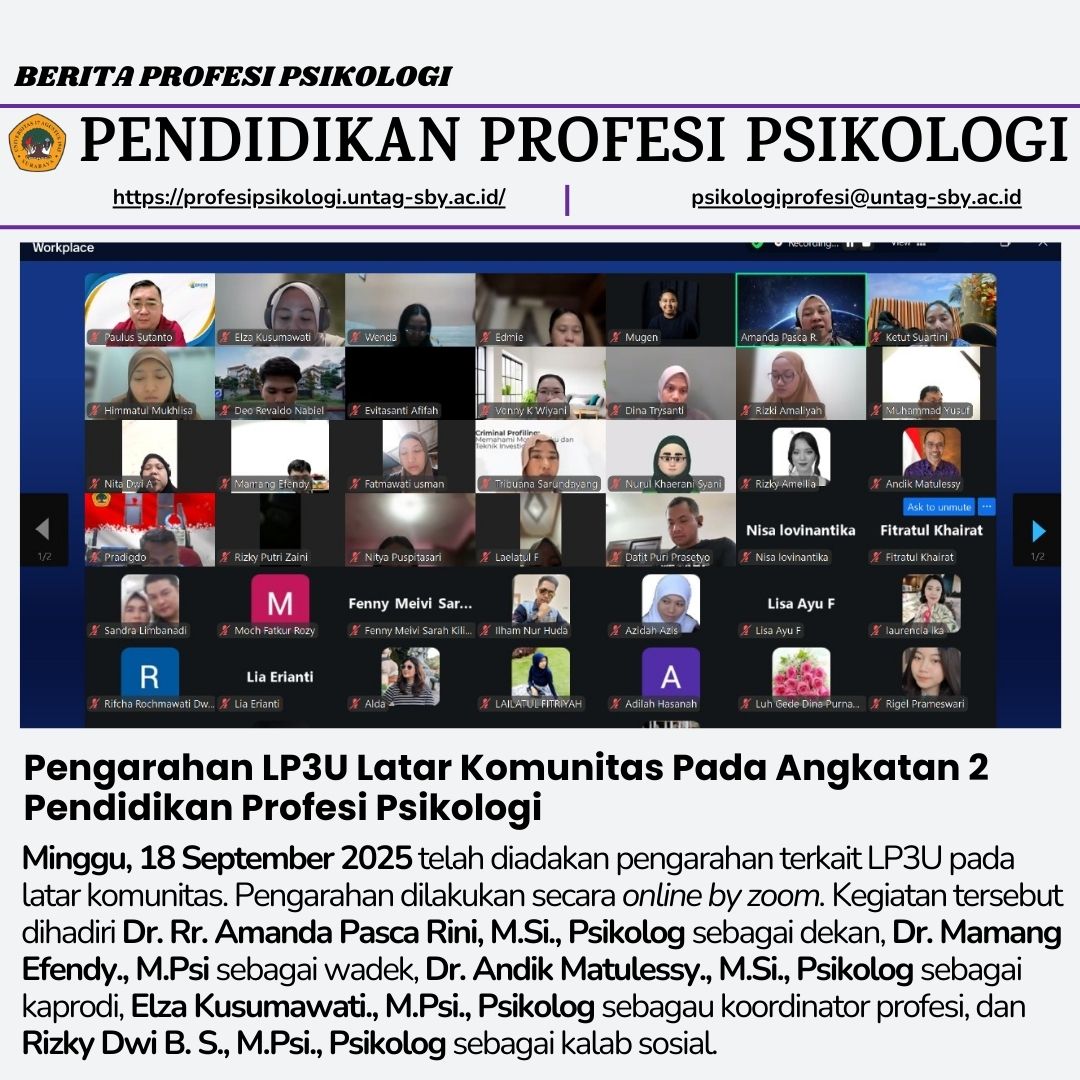 Pengarahan LP3U Latar Komunitas Pada Angkatan 2 Pendidikan Profesi Psikologi
