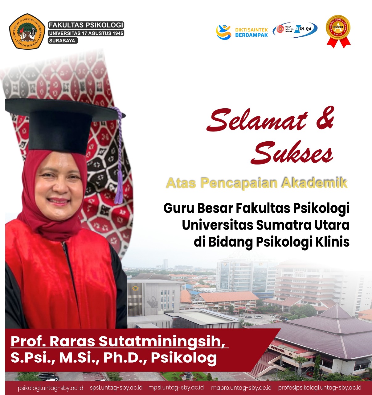 SELAMAT DAN SUKSES ATAS TERPILIHNYA PROF. DR. RARAS SUTATMININGSIH, S.PSI., M.SI., PH.D., PSIKOLOG