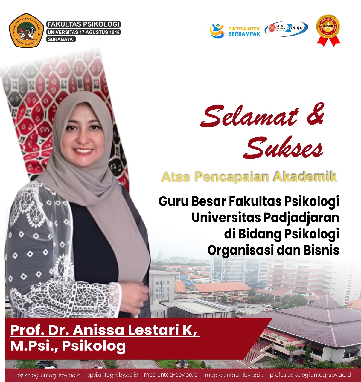 SELAMAT DAN SUKSES ATAS TERPILIHNYA PROF. DR. ANISSA LESTARI K, M.PSI.,...